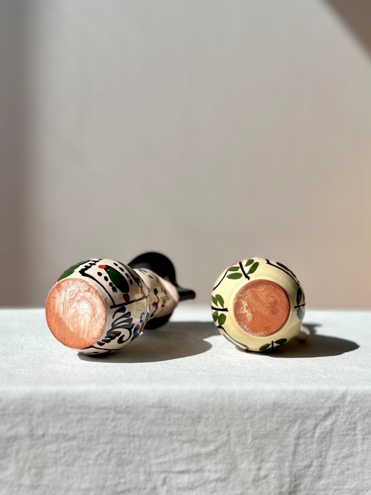 Vyroben z červené hlíny a zdoben glazurou s ručně malovanými lidovými motivy. Na těle džbánku se objevují typické ornamenty, které vycházejí z folklórních vzorů a symboliky.