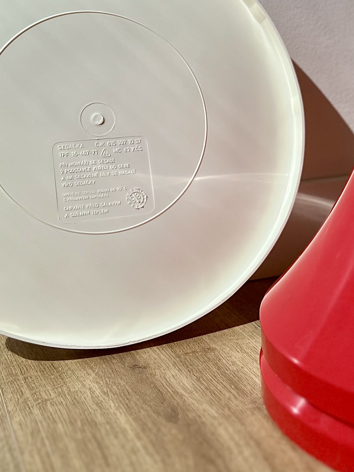 Plastová stolička ve stylu Tamtam vyrobena v Československu roku 1985.