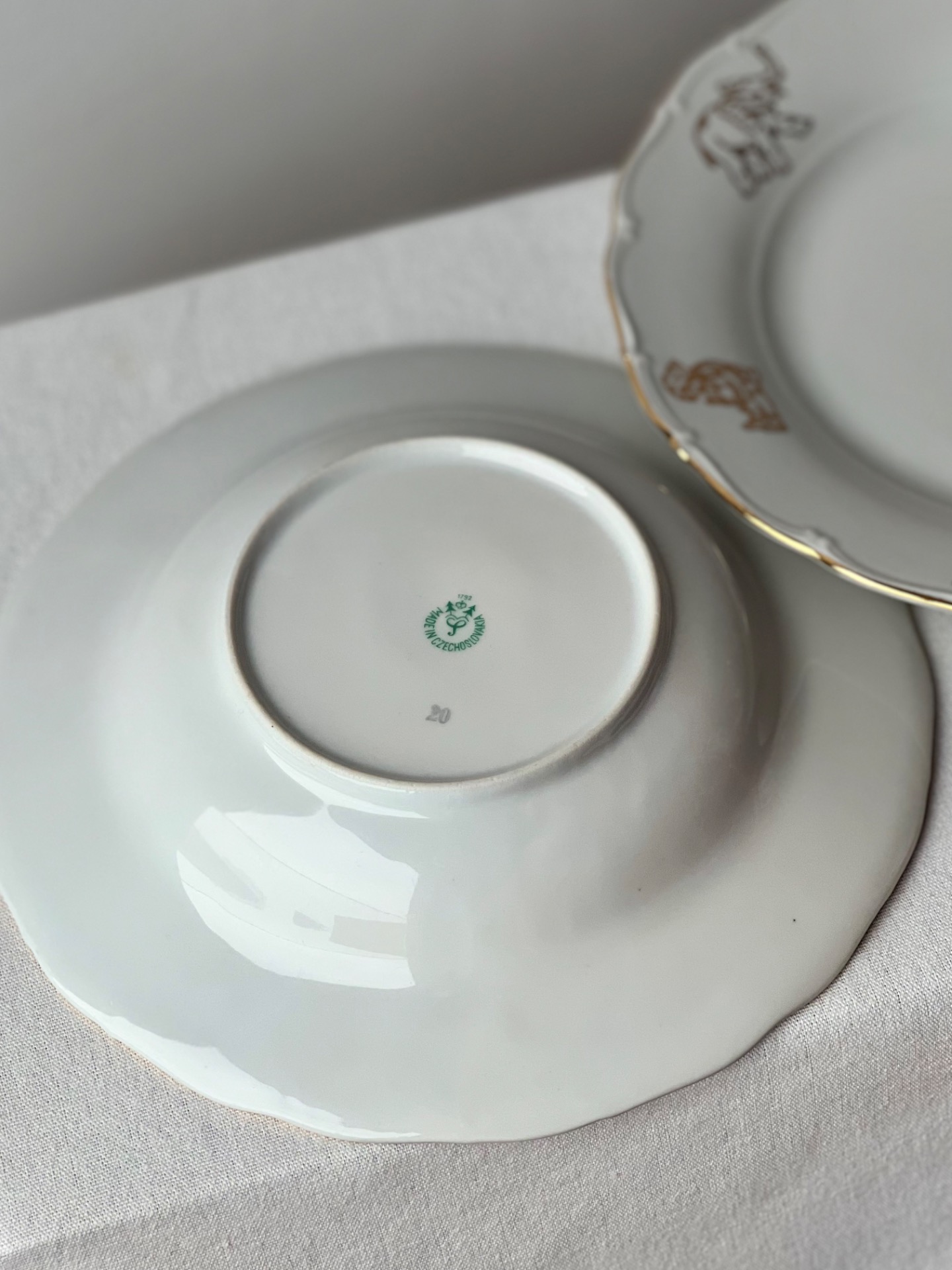 Set obsahuje mělký i hluboký talíř - oba ve velmi pěkném stavu, připravené dělat radost dál. Průměr talířků je 21 cm.
