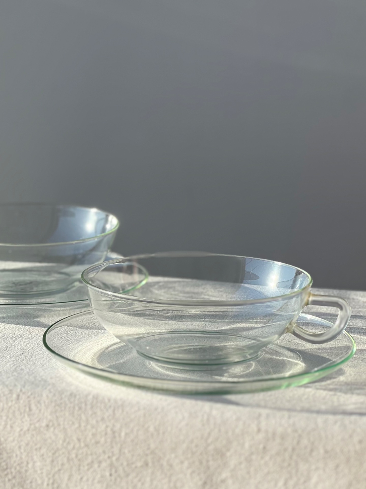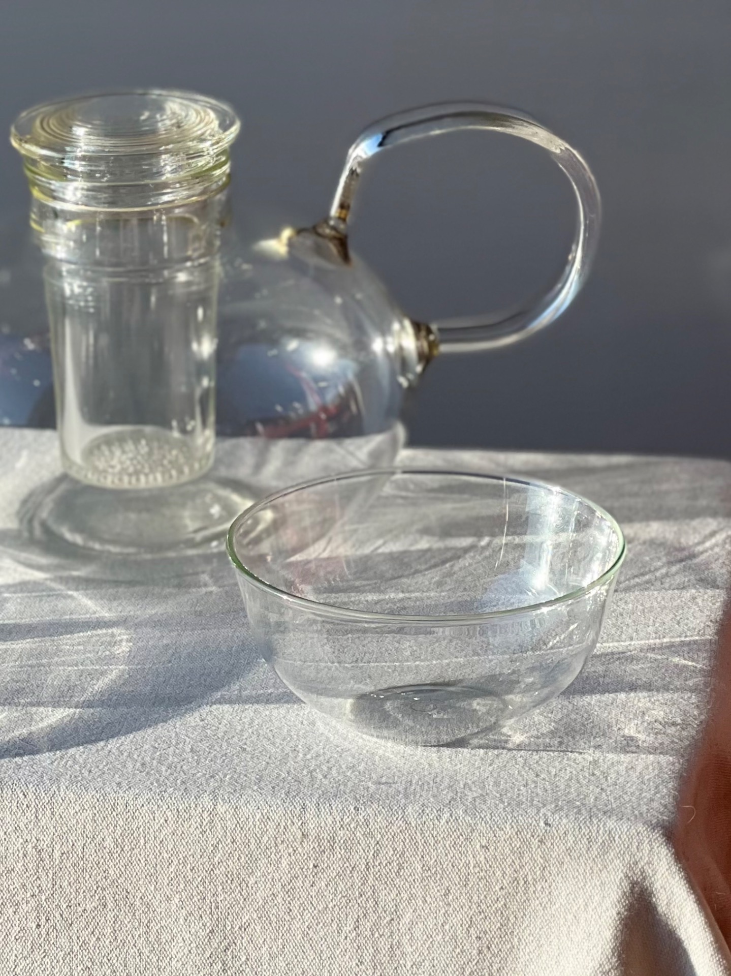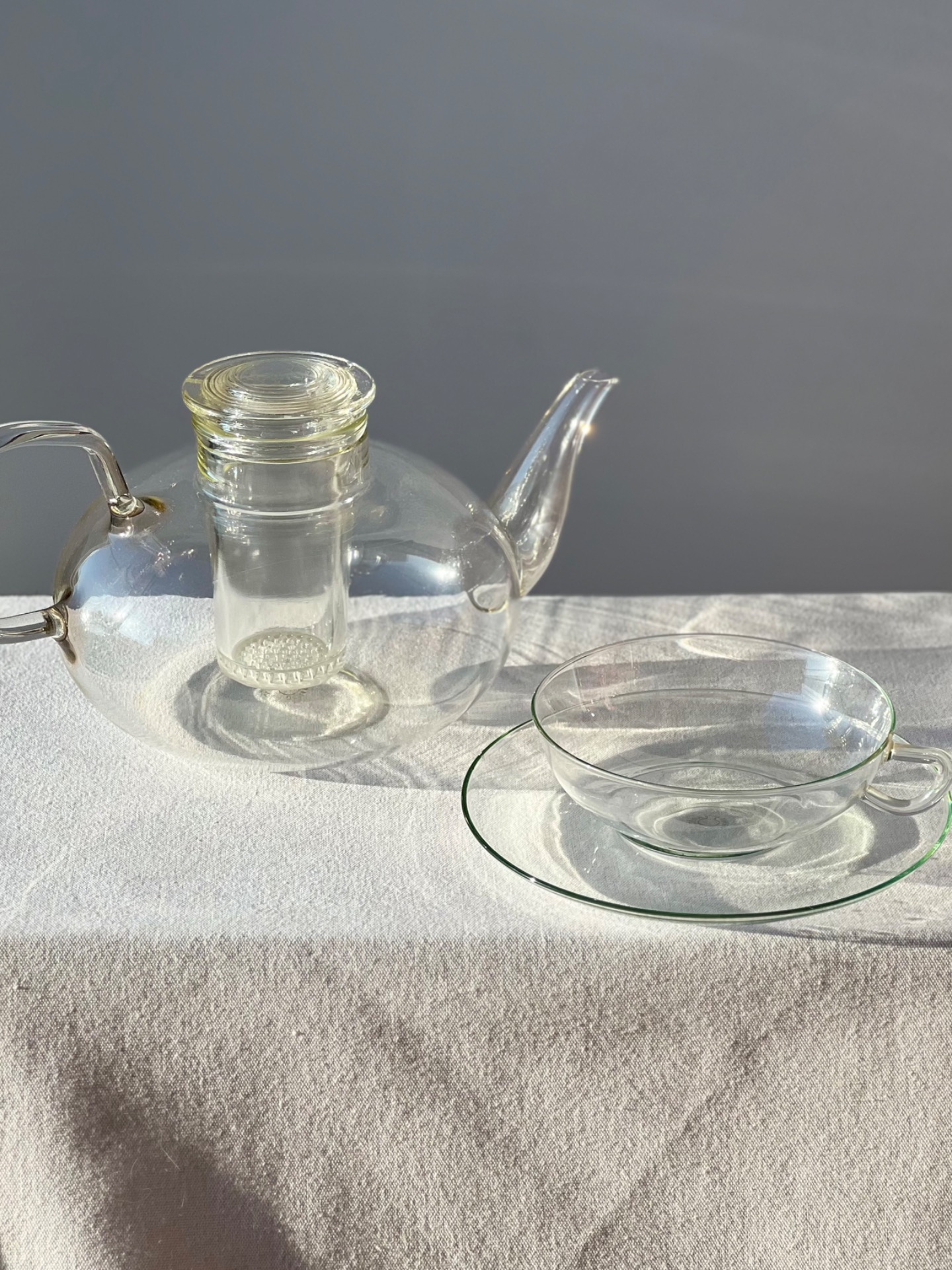 Funkcionalistický čajový servis vyrobený podle návrhu německého bauhausového designéra Wilhelma Wagenfelda. Wagenfeld po uzavření Bauhausu ve Výmaru působil na volné noze ve sklárně v Jeně, kde navrhl právě tento ikonický servis ze žáruvzdorného skla.
